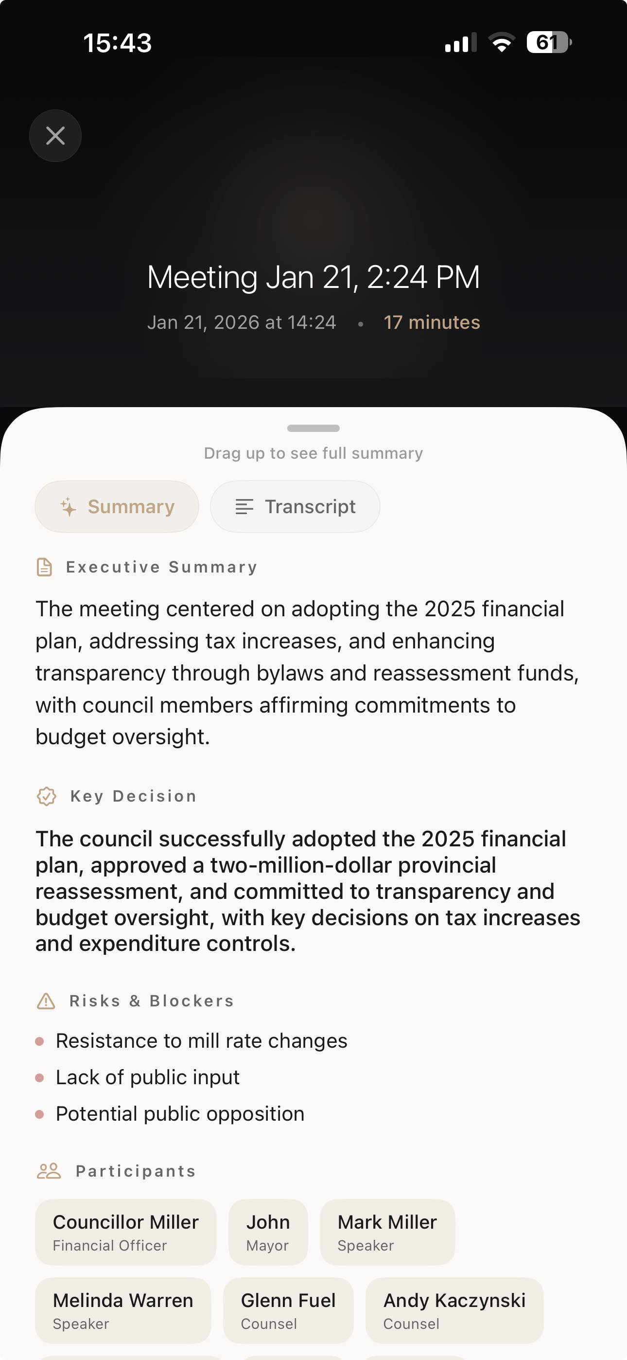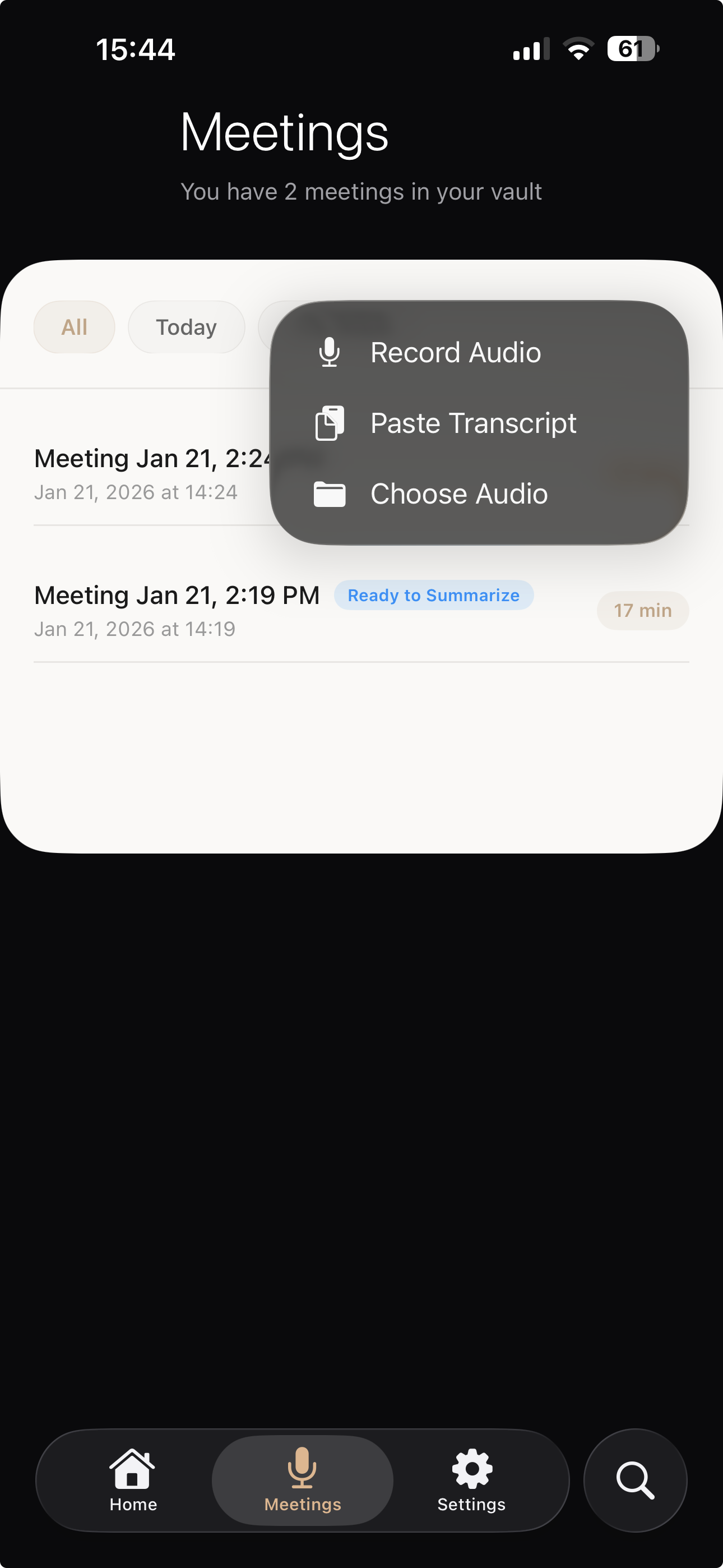 Semantic vector search across all your meetings. Find any conversation, topic, or decision instantly with natural language.